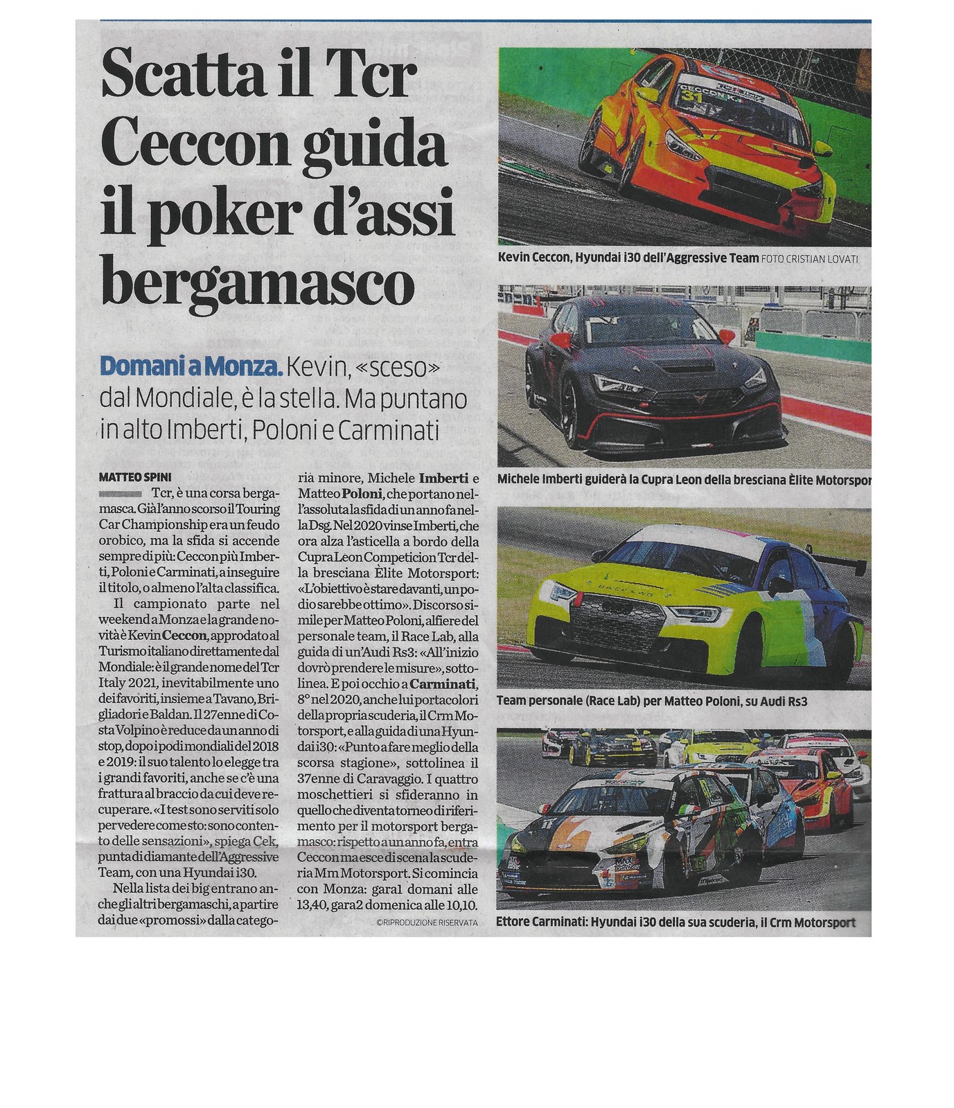 L’esordio di Carminati nella competizione automobilistica risale al 2019, ma prima il driver bergamasco ha militato nelle due ruote: “Sì, nasco come corridore motociclistico, ho iniziato nel mini cross per poi passare al CIV con ottimi risultati, ma il mio sogno è stato sempre quello di correre in auto. Quando ho avuto modo di farlo, non ci ho pensato un attimo e nel 2019 ho debuttato nella Super Cup con una Honda Civic vincendo subito la classe Turismo. Poi tre anni di TCR Italy e quest’anno qui nel GT Tricolore, correrò da solo ma con ambizione di fare bene.”